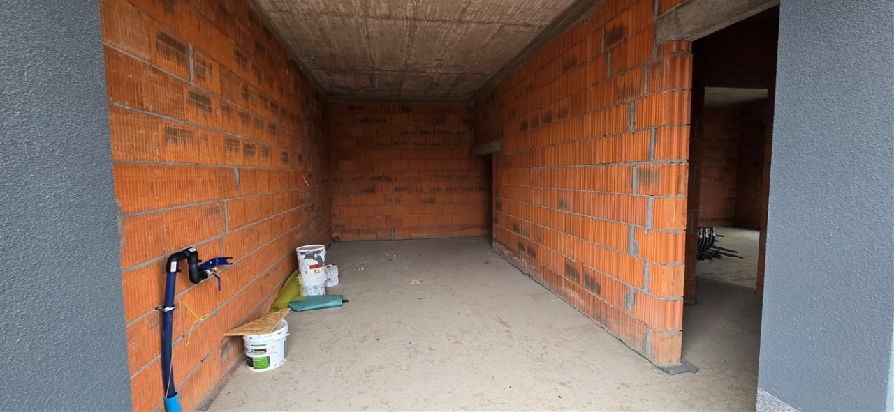 Ściany budynku zbudowane z pustaka ceramicznego z zewnątrz ocieplone styropianem 20 cm. . Dom oddzielony podwójnym murem z dylatacją i styropianem. Ściany zewnętrze domu wykończone oraz otynkowane w kolorach szaro-antracytowych. Dach skośny pokryty dachówka ceramiczną koloru antracytowego. Rynny z tworzywa posiadające osadnik rynnowy. Zapewniamy ciepły montaż okien co zapewnia szczelność i znaczne obniżenie kosztów ogrzewania. Okna PCV, trzyszybowe, od wewnątrz białe, z zewnątrz antracytowe. Wszystkie okna na piętrze i parterze wraz z dużym tarasowym posiadają elektryczne rolety zewnętrzne, schowane w elewacji. Zamontowane parapety zewnętrzne zamontowane na styrodurze (XPS) – ciepły montaż. Zostały także wygłuszone, co daje większy komfort podczas opadów. Eleganckie drzwi wejściowe z nowoczesnym długim pochwytem, szklone typu lustro weneckie. Brama garażowa koloru antracytowego, z możliwością automatycznego otwierana na pilot lub manualnie na klucz.